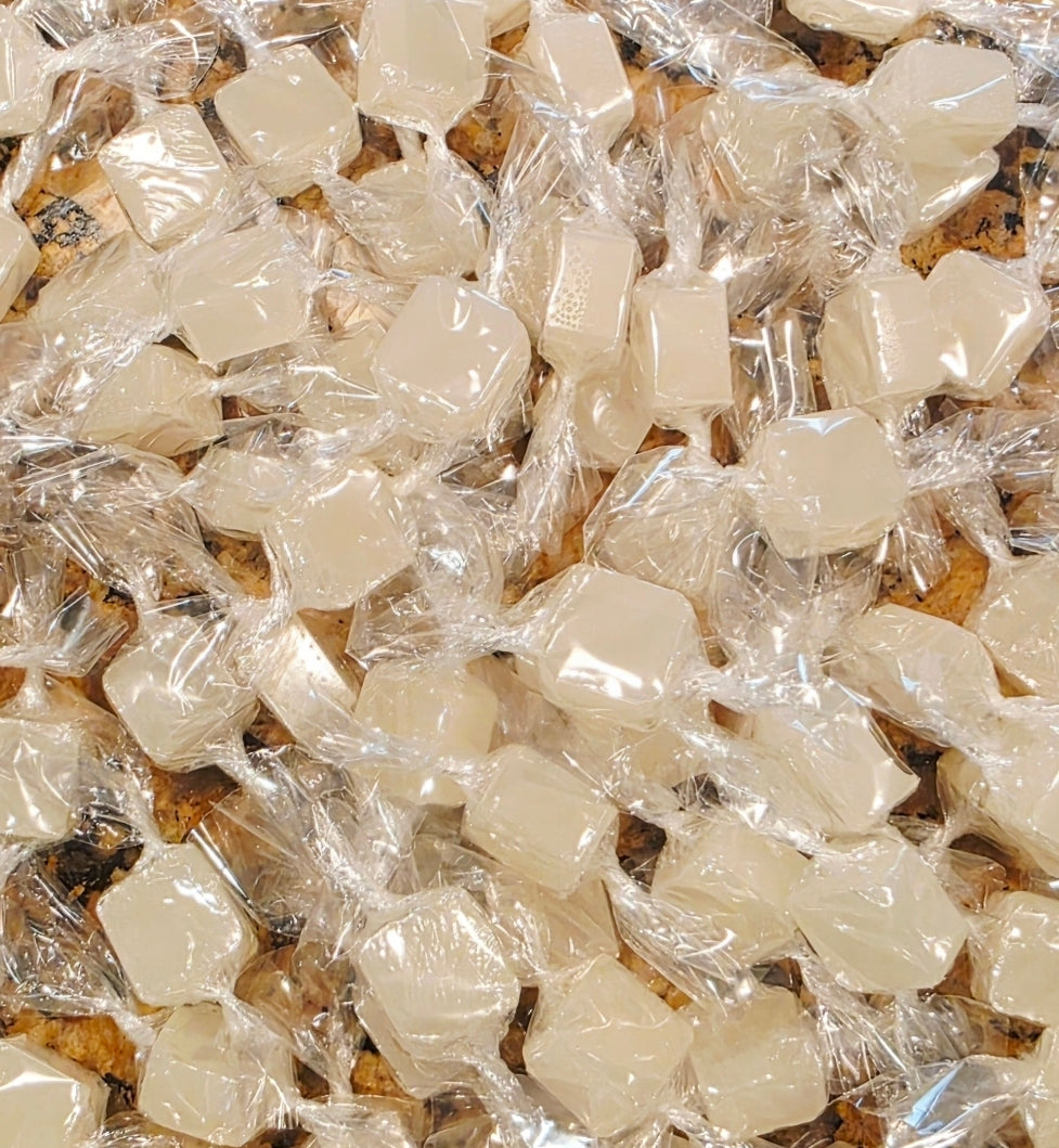 Smooth, artisan-crafted hard candies with a rich buttery sweetness, delicately balanced by a light, refreshing hint of peppermint for a clean, elegant finish. Candies are individually wrapped.